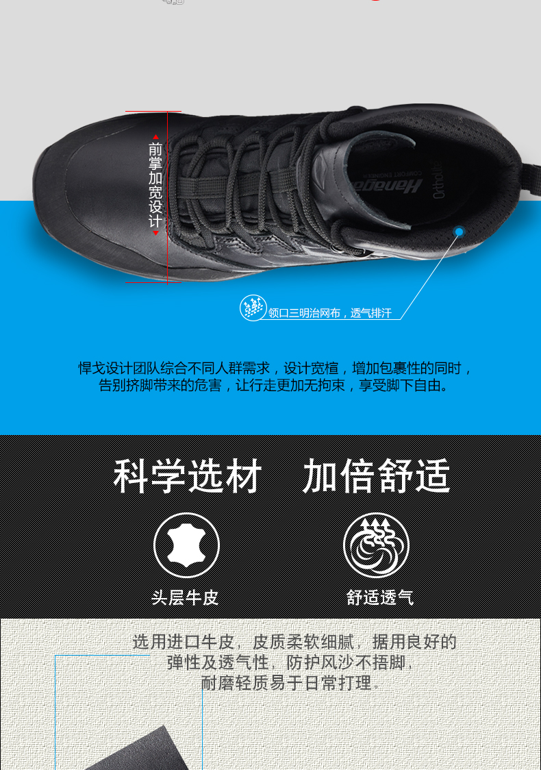 悍戈突击者战术靴通勤靴高帮皮鞋真皮透气舒适黑色皮鞋男鞋35051