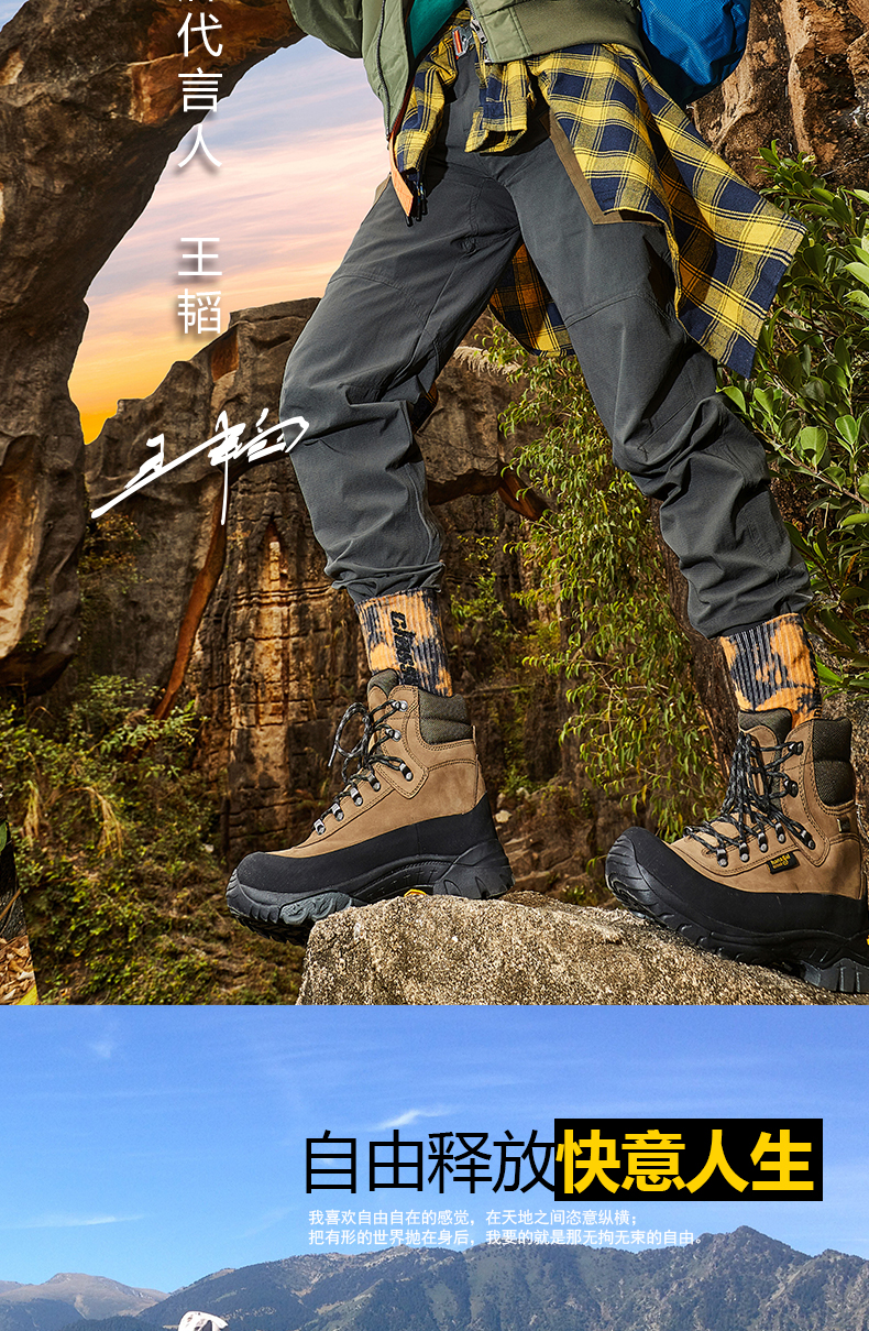 悍戈新款明星王韬同款户外徒步时尚休闲工装靴四季防水鞋