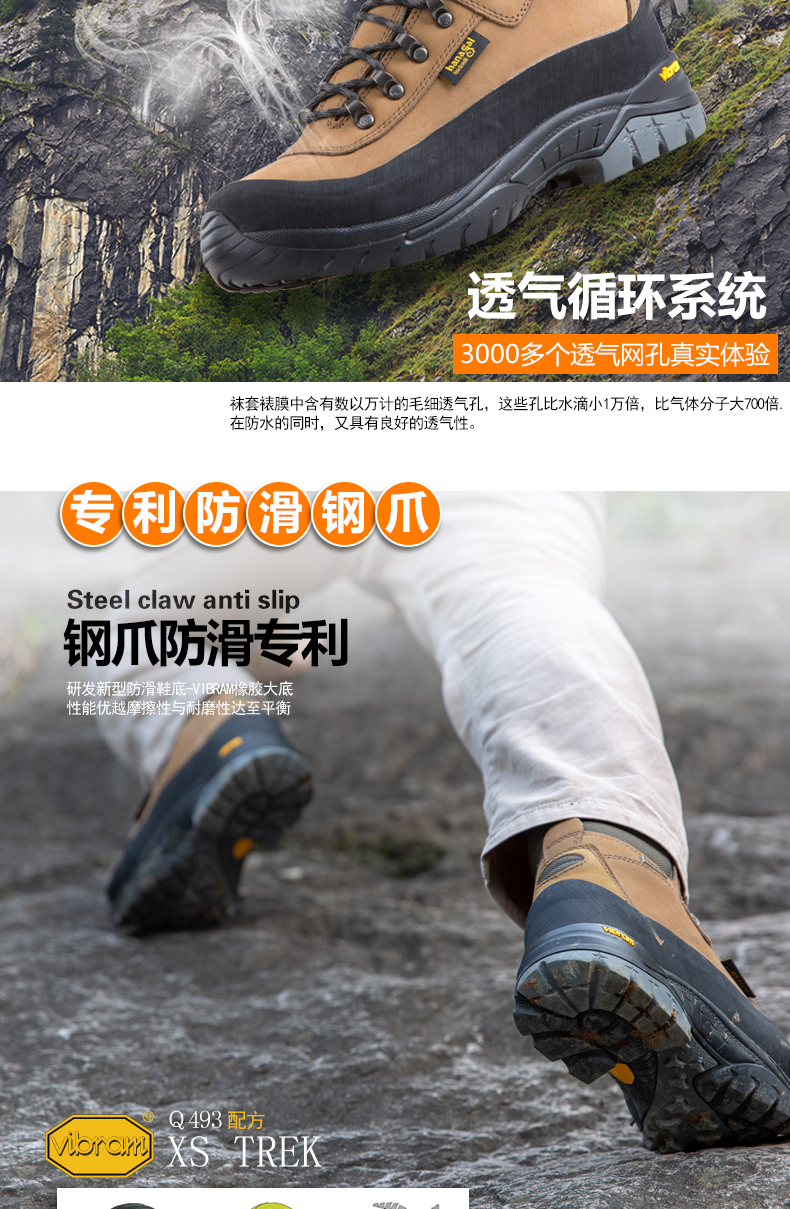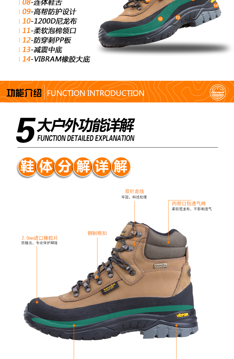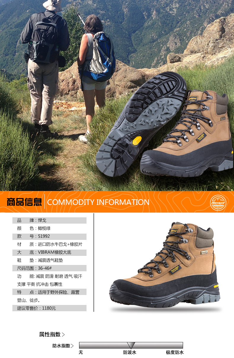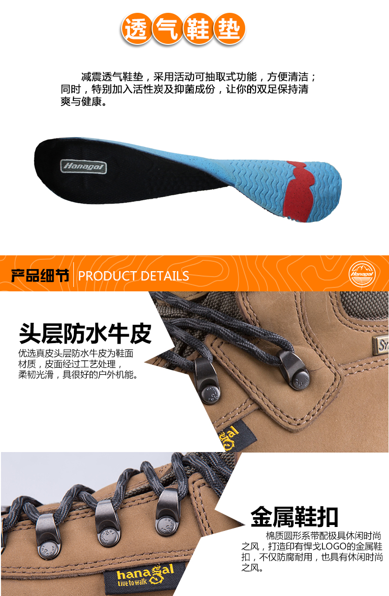 悍戈四季耐磨中帮登山鞋男士防水鞋女徒步鞋真牛皮防滑透气户外鞋51992