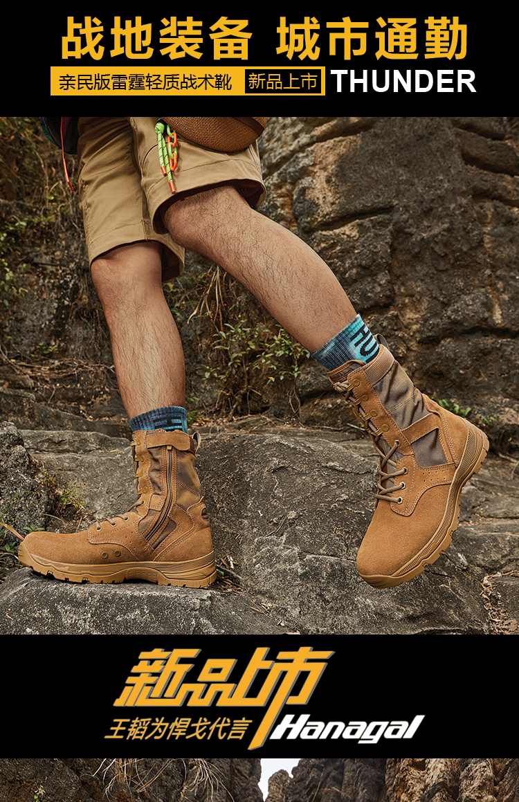 沙色悍戈户外高帮沙漠徒步靴战术靴战狼军迷靴马丁靴夏季轻量款33301