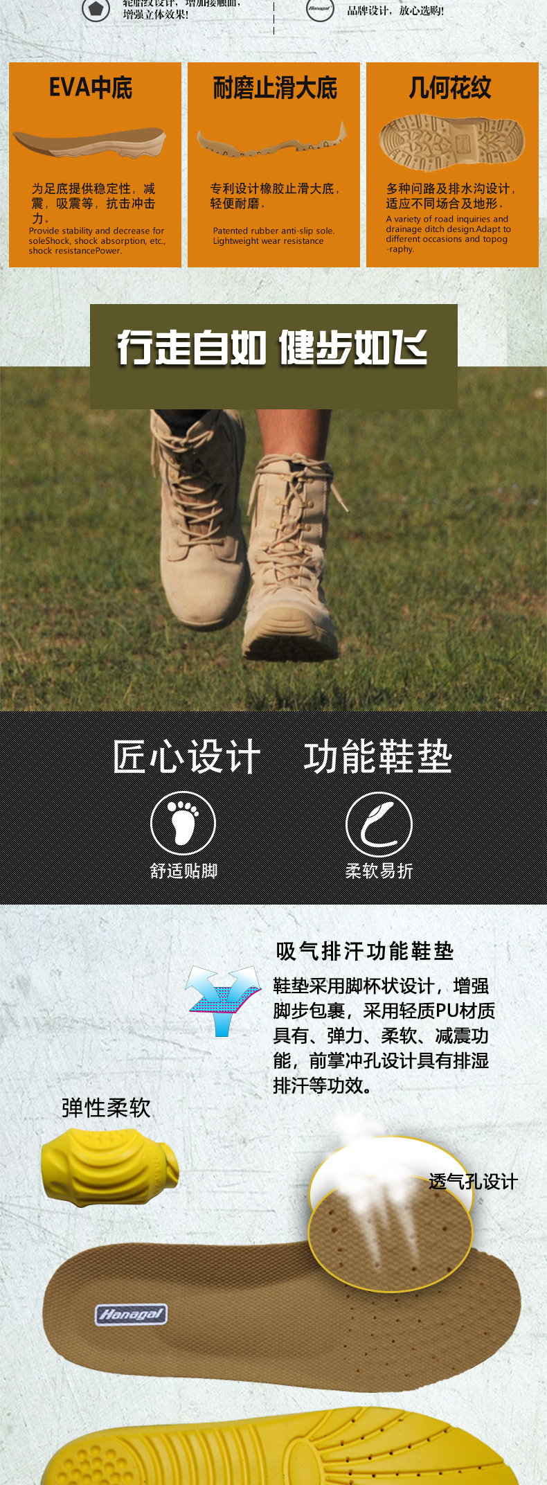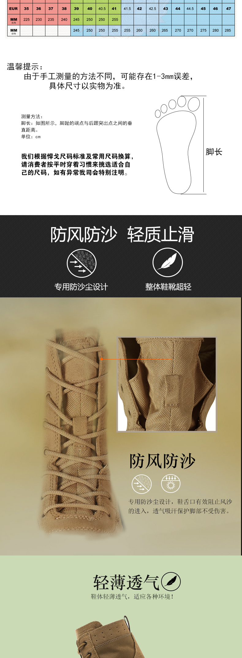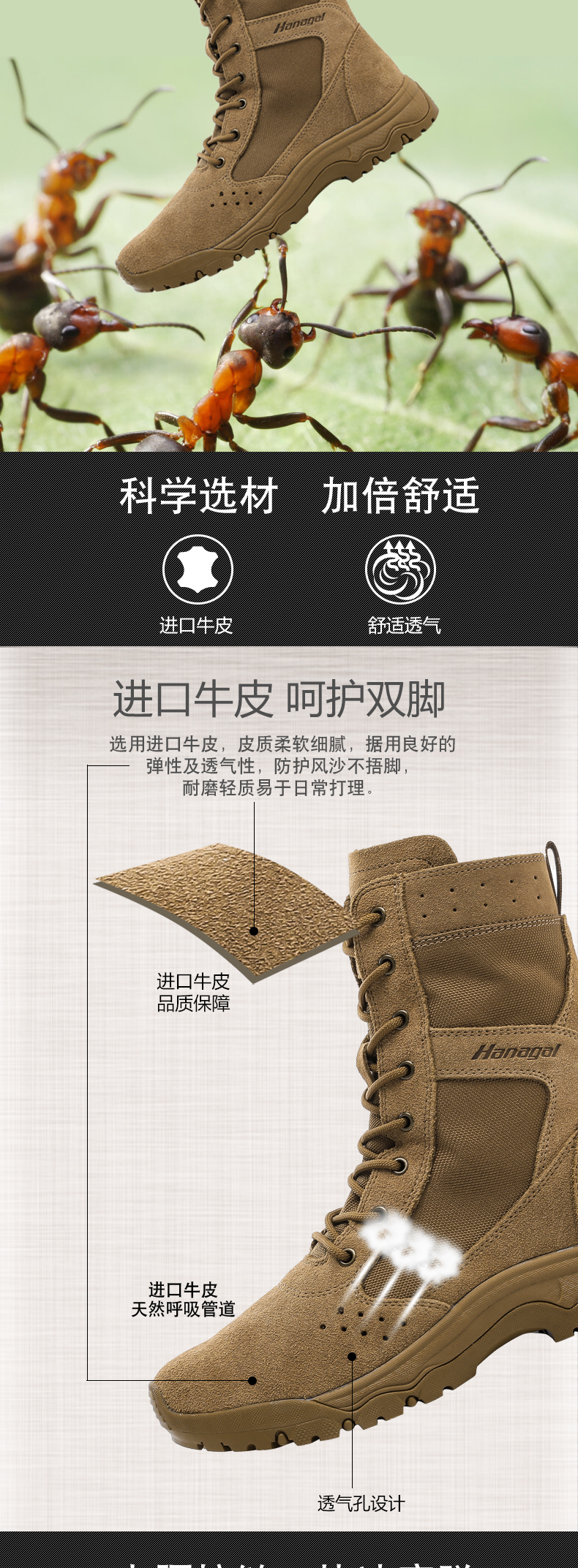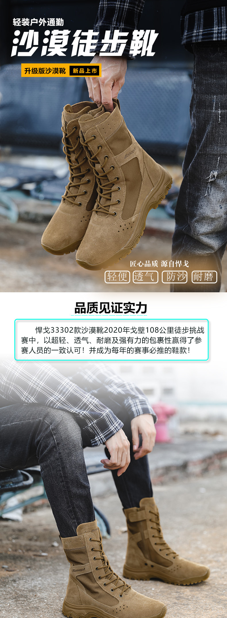 沙色悍戈户外高帮沙漠徒步靴战术靴战狼军迷靴马丁靴夏季轻量款33301