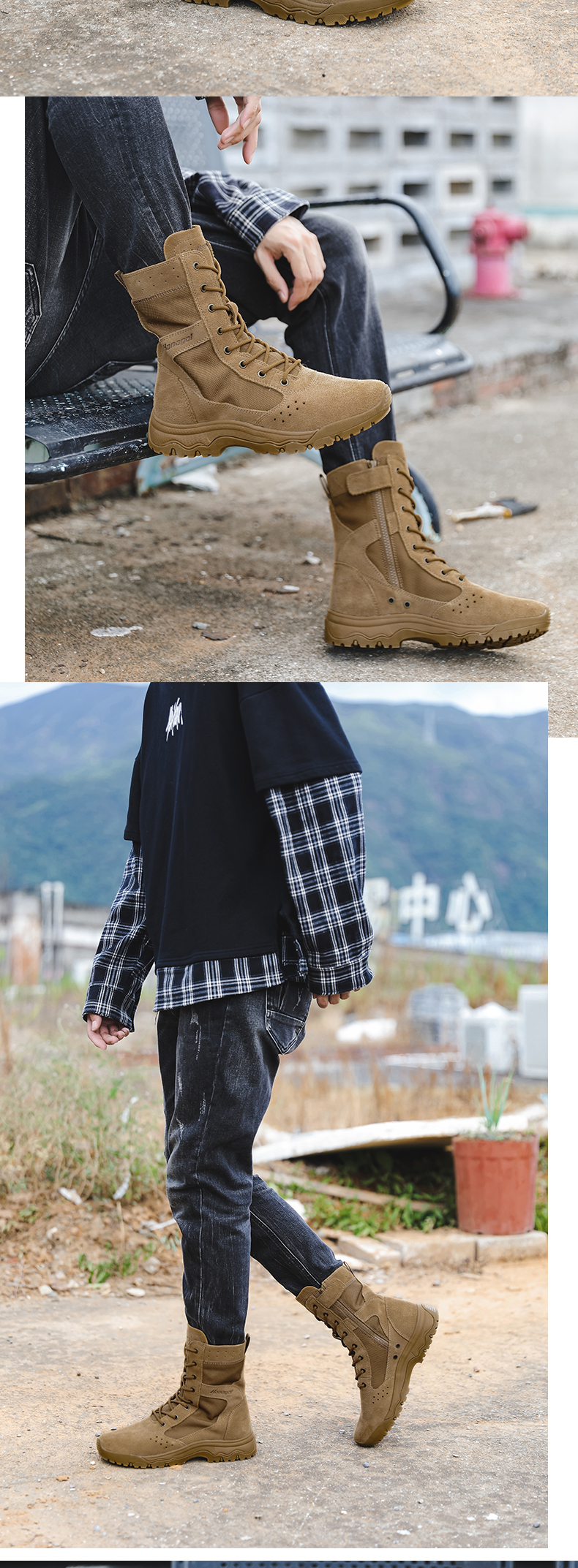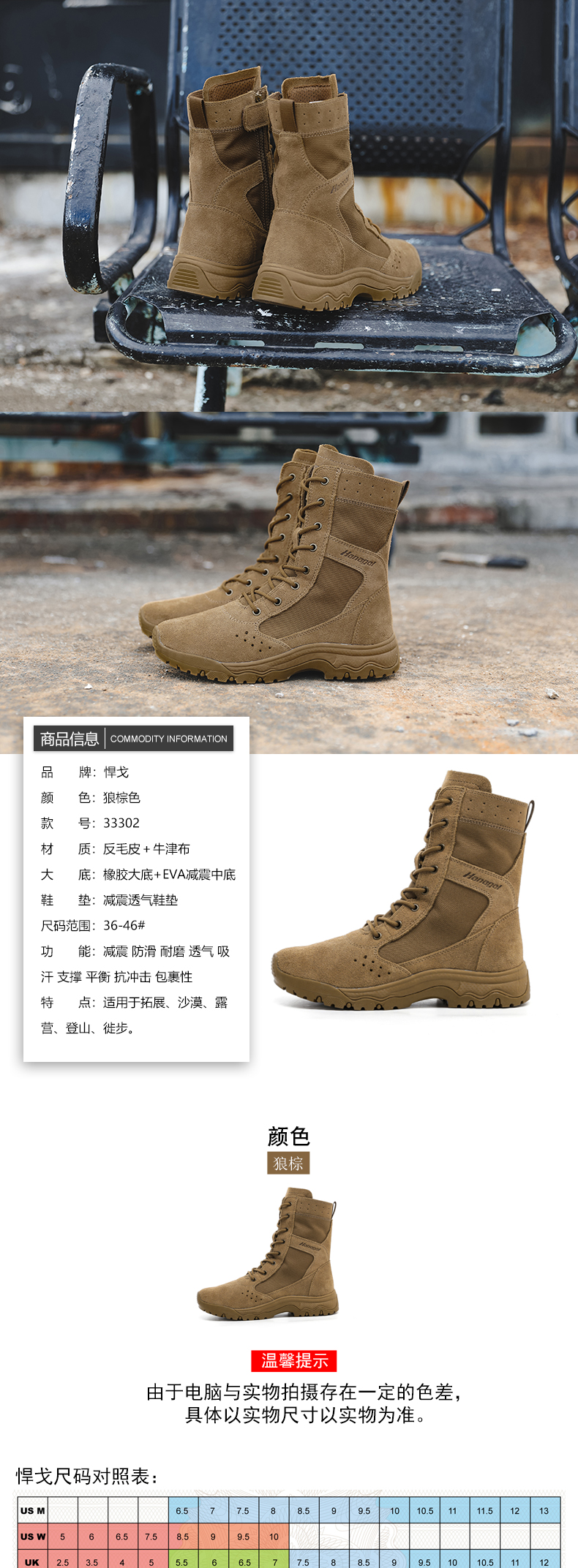 悍戈户外新款33302徒步沙漠靴真皮高帮马丁靴战术靴YKK拉链