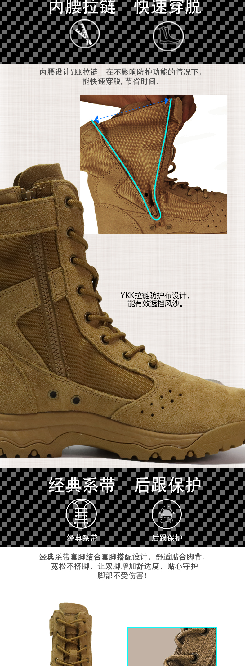悍戈四季高帮真皮头层牛皮YKK拉链军迷靴徒步靴战术靴救援靴3025