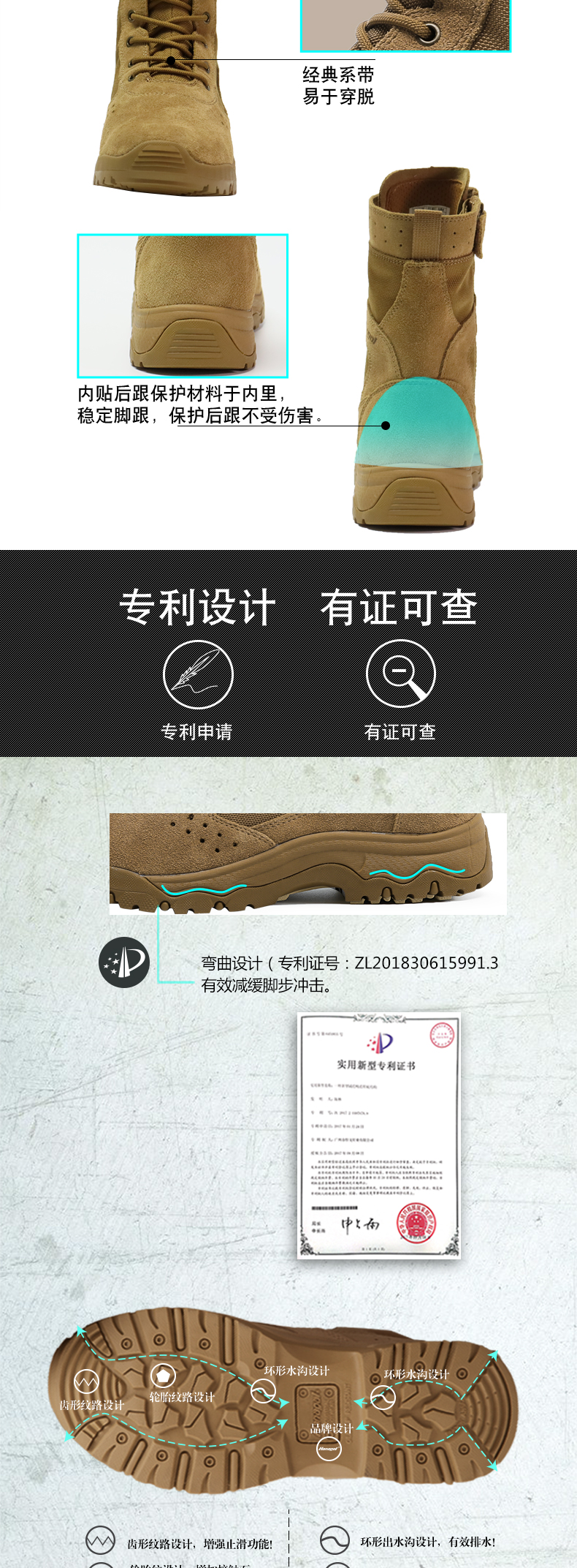 悍戈天眼四季户外战术靴特种兵V底Boa快速扣高帮军迷靴男靴33713
