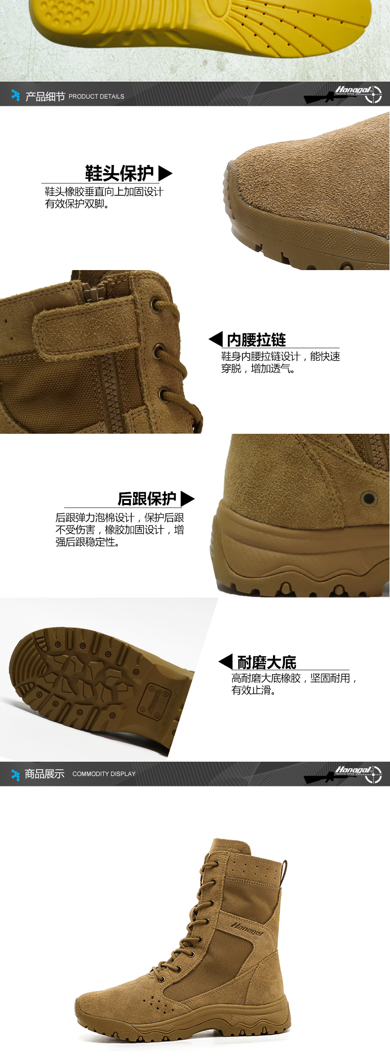 悍戈户外徒步沙漠靴真皮高帮马丁靴战术靴YKK拉链33302