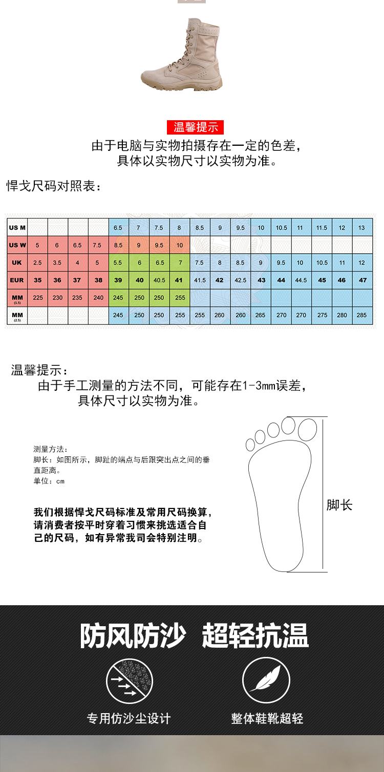 沙色悍戈户外高帮沙漠徒步靴战术靴战狼军迷靴马丁靴夏季轻量款33301