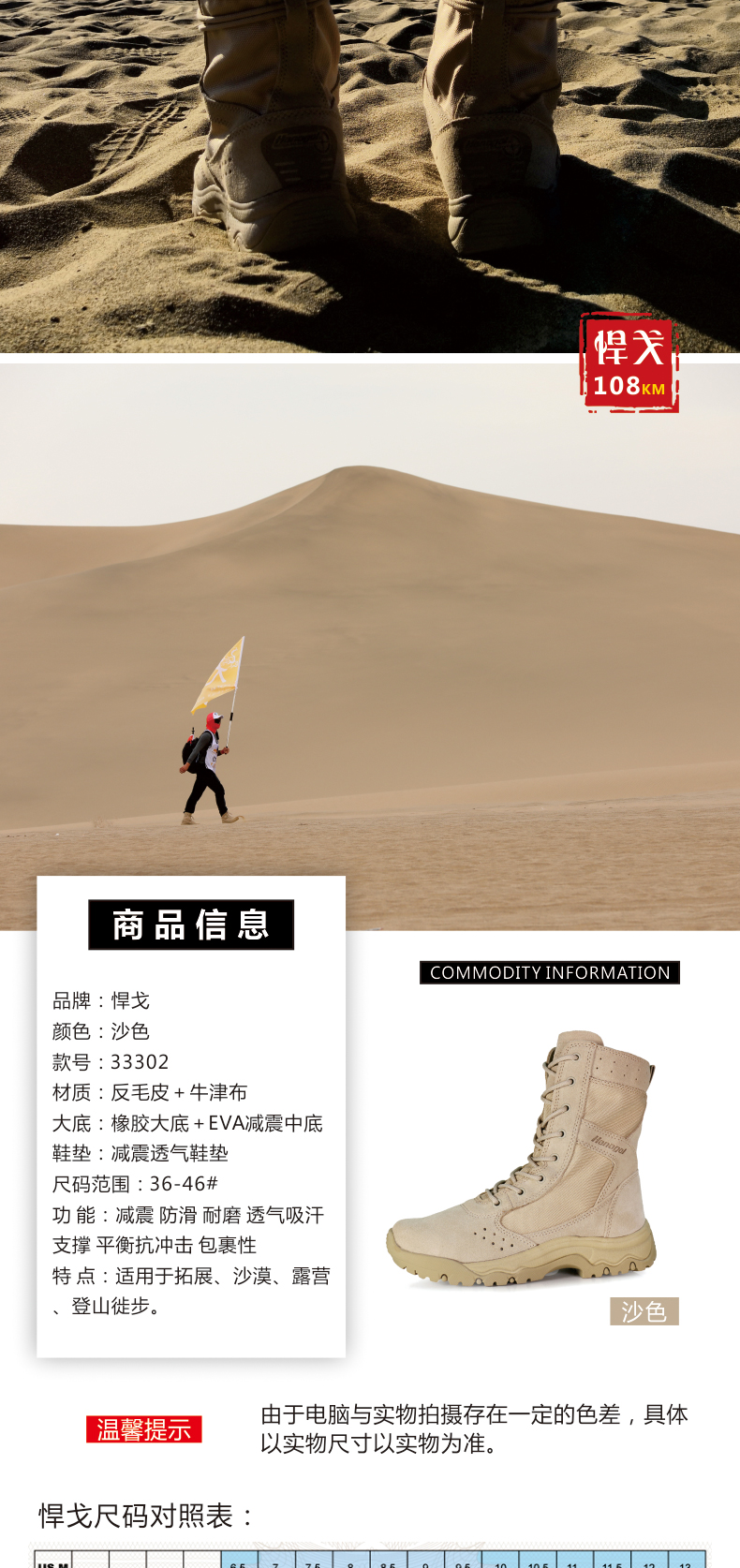 悍戈户外新款33302徒步沙漠靴真皮高帮马丁靴战术靴YKK拉链