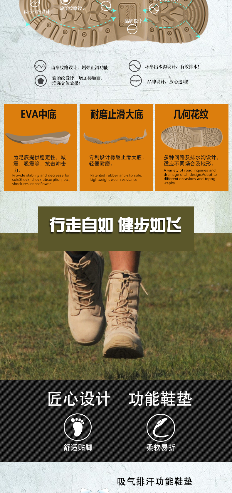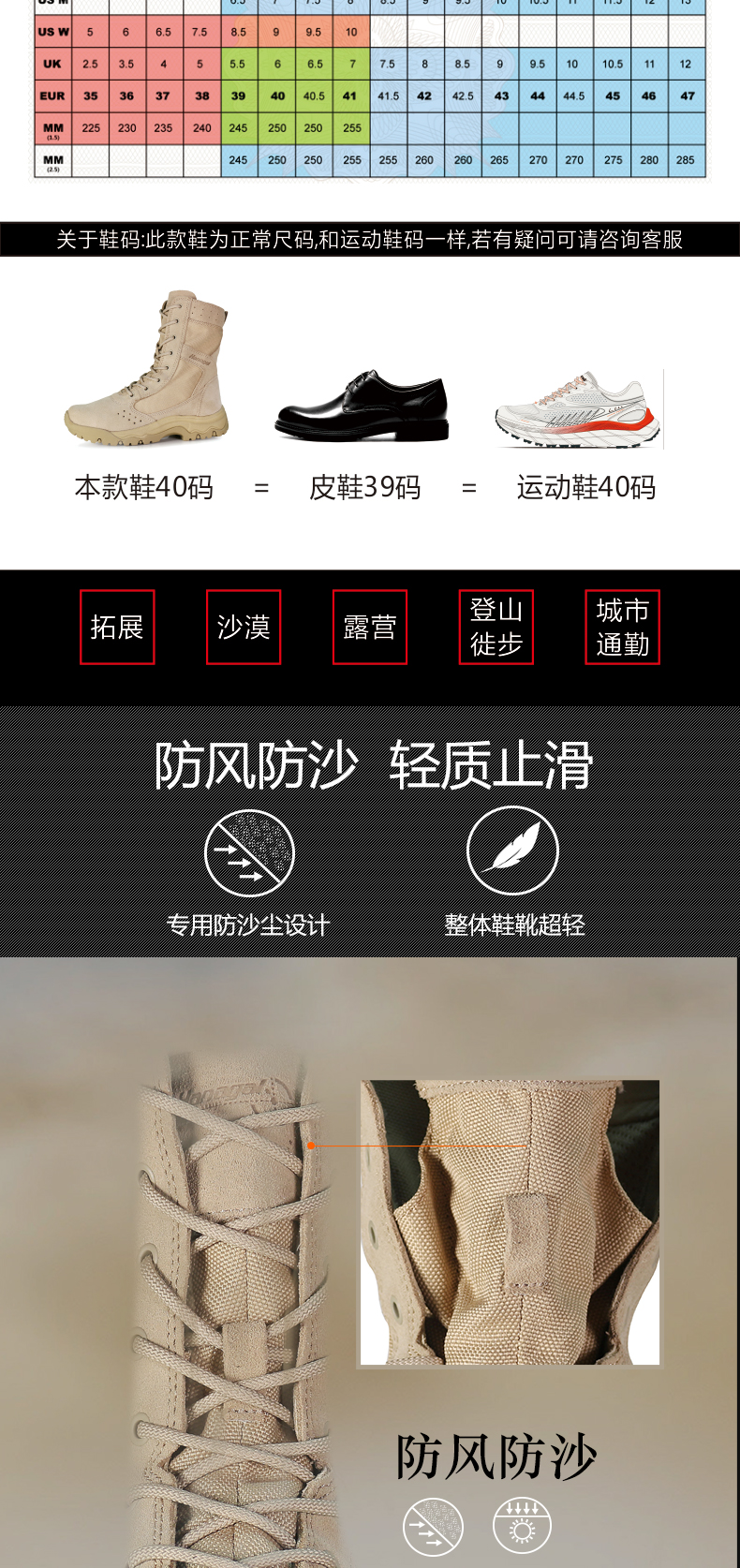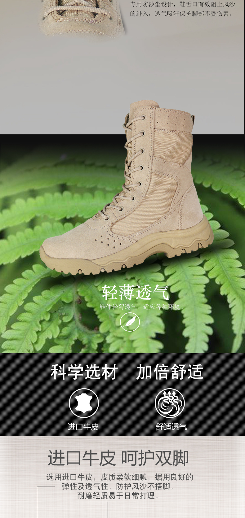 沙色悍戈户外高帮沙漠徒步靴战术靴战狼军迷靴马丁靴夏季轻量款33301