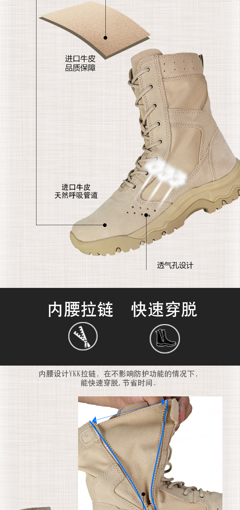 悍戈四季高帮真皮头层牛皮YKK拉链军迷靴徒步靴战术靴救援靴3025