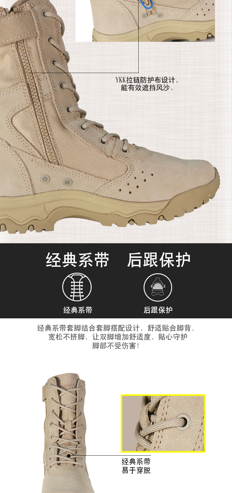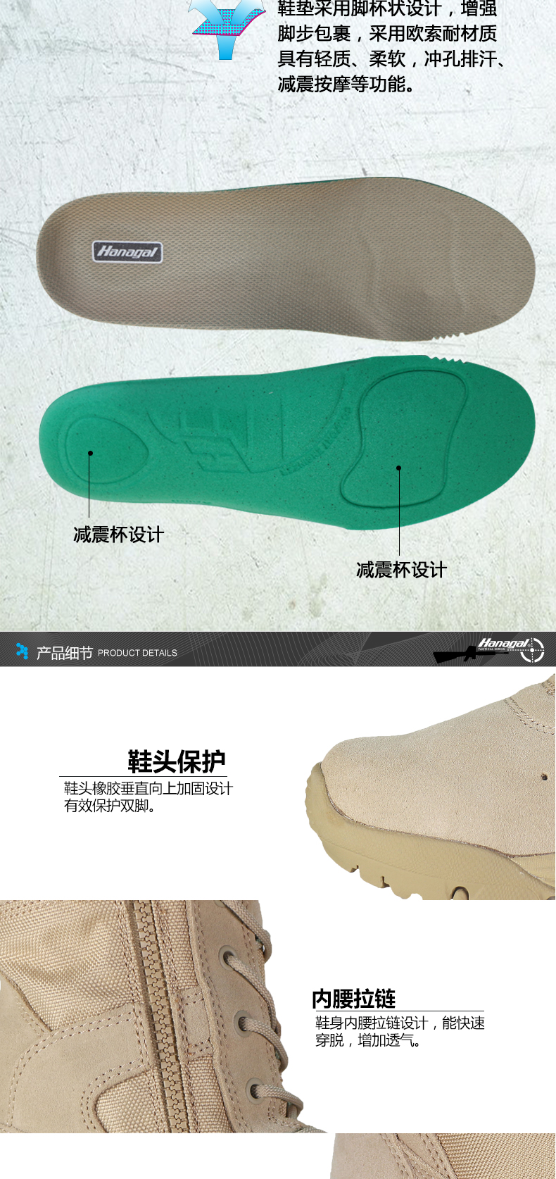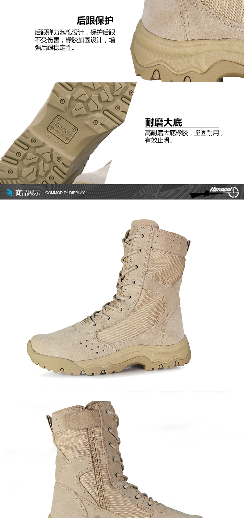 悍戈户外徒步沙漠靴真皮高帮马丁靴战术靴YKK拉链33302
