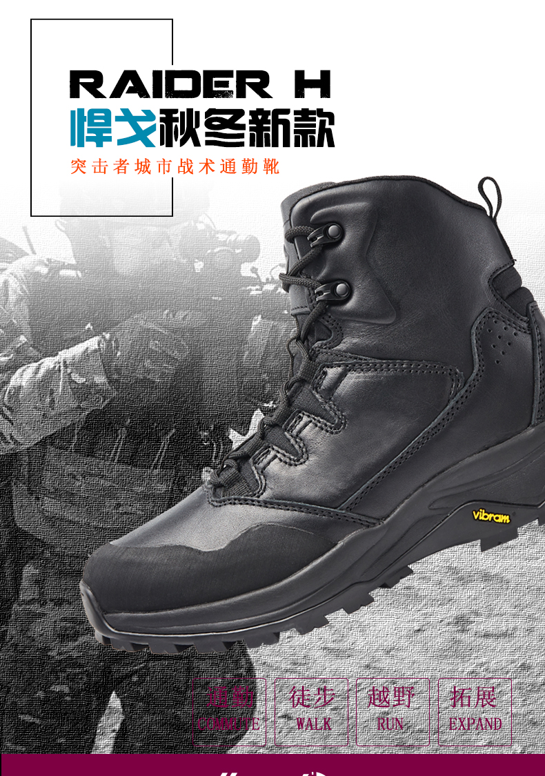 悍戈33302头层牛皮真皮户外徒步战术靴Ykk拉链款快速穿脱马丁靴