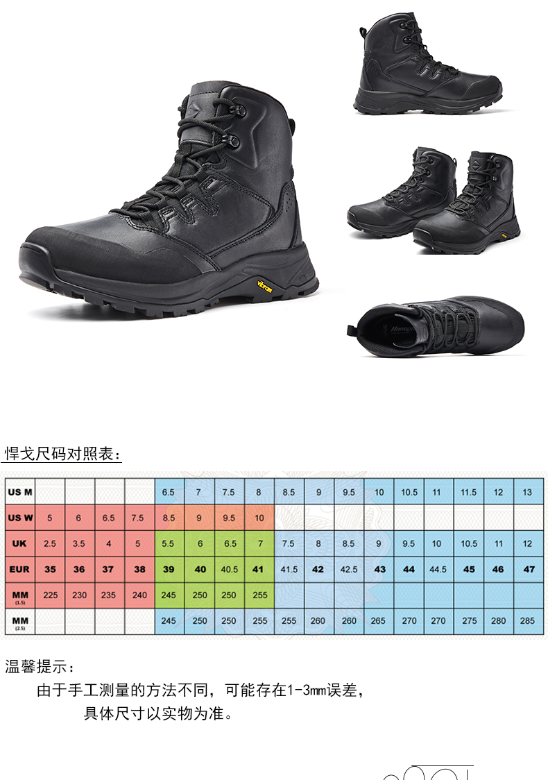 悍戈户外徒步沙漠靴真皮高帮马丁靴战术靴YKK拉链33302