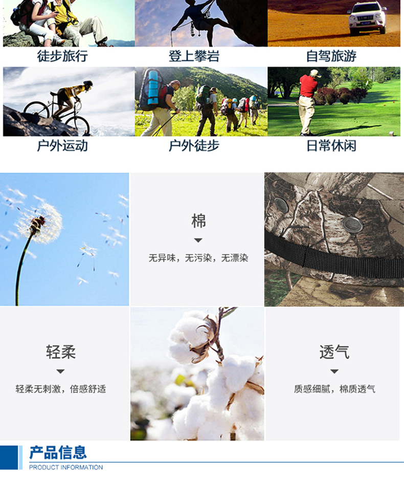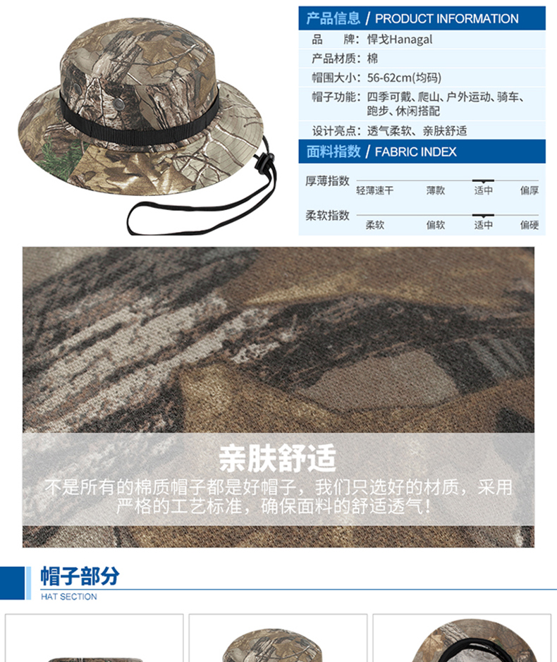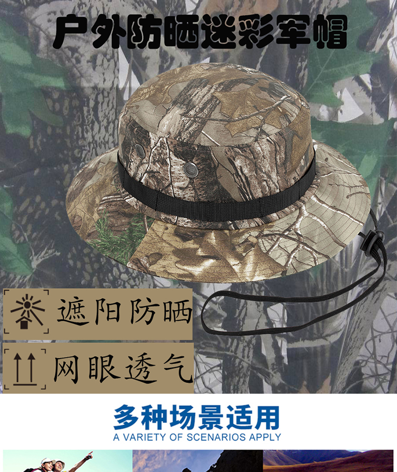 悍戈男女大沿迷彩军帽户外登山速干遮阳帽太阳帽圆顶帽帽渔夫帽
