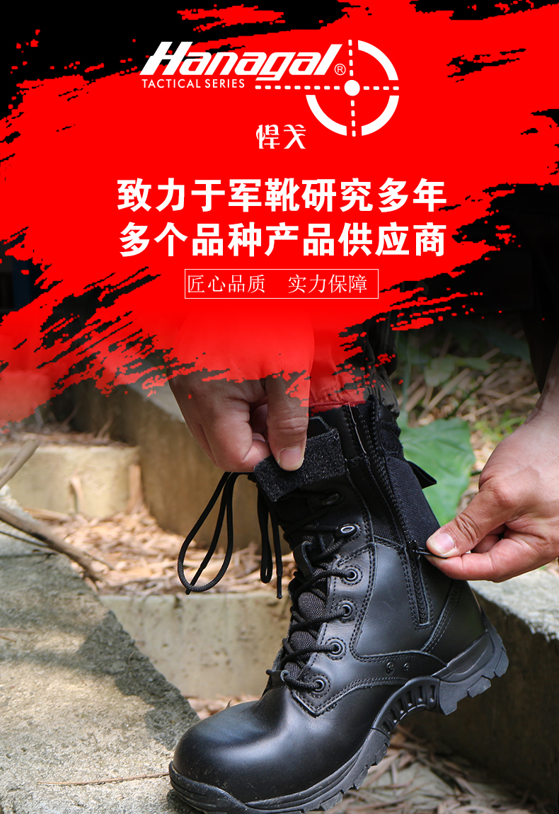 悍戈33302头层牛皮真皮户外徒步战术靴Ykk拉链款快速穿脱马丁靴
