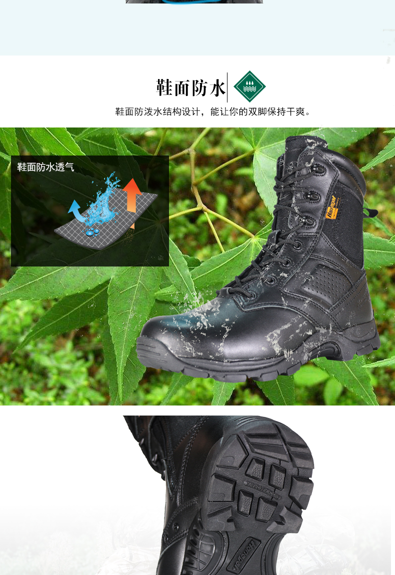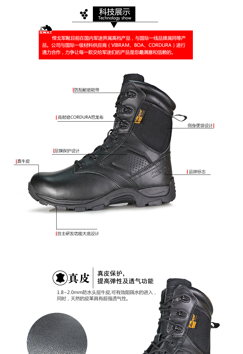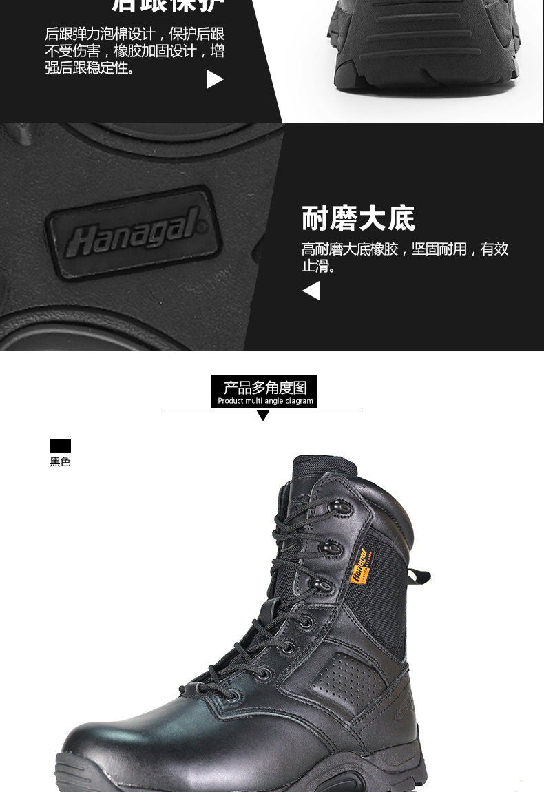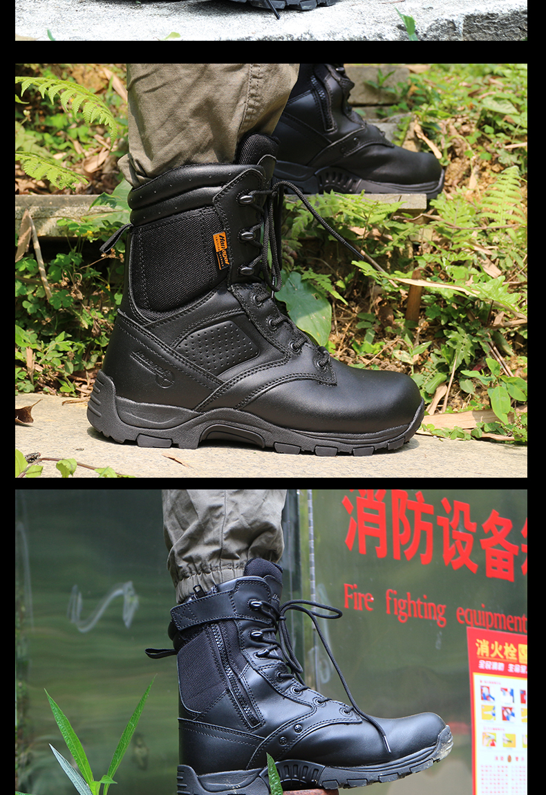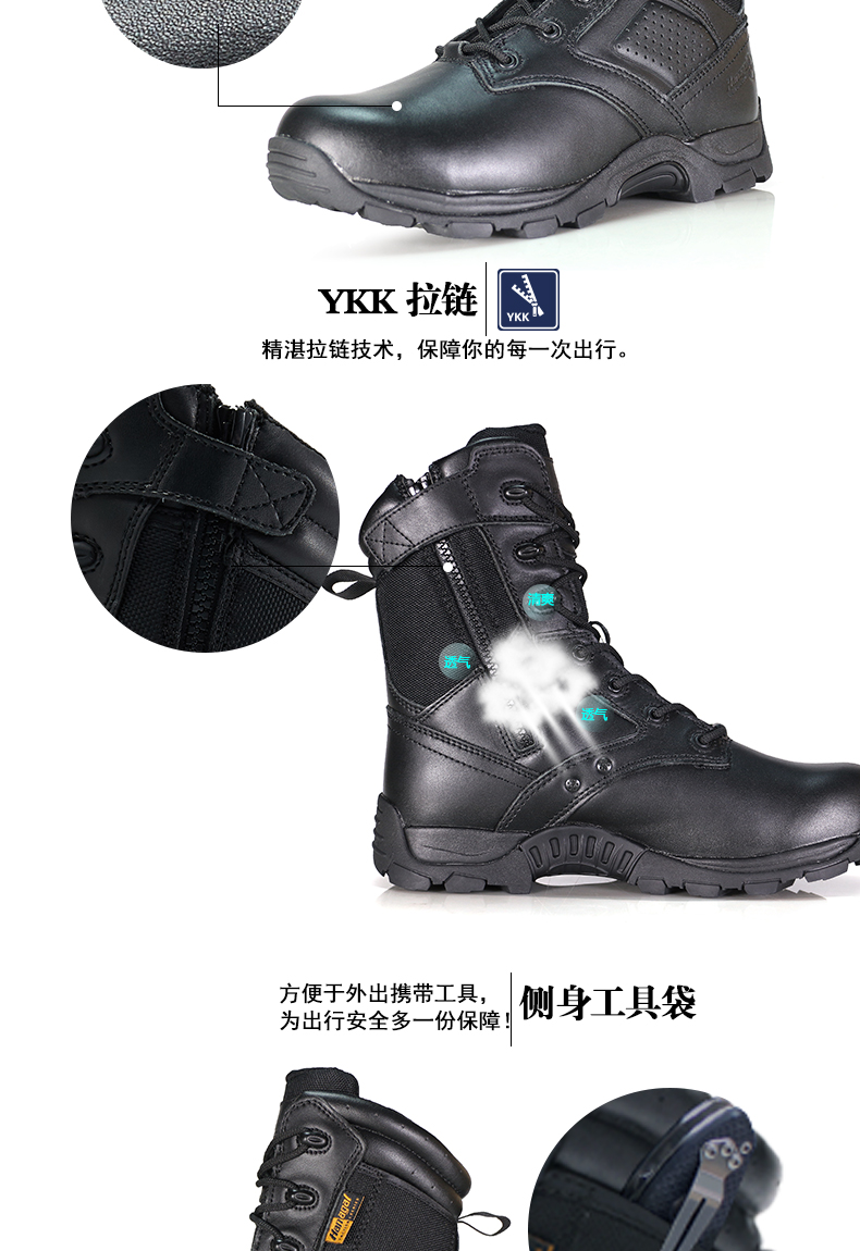 悍戈四季高帮真皮头层牛皮YKK拉链军迷靴徒步靴战术靴救援靴3025