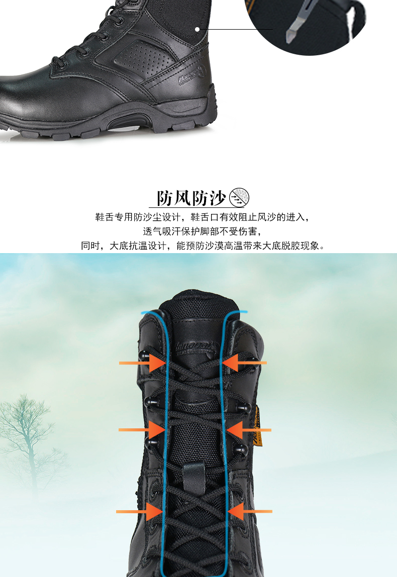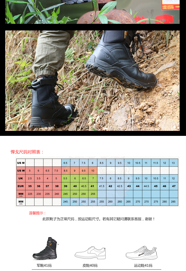 悍戈户外新款33302徒步沙漠靴真皮高帮马丁靴战术靴YKK拉链