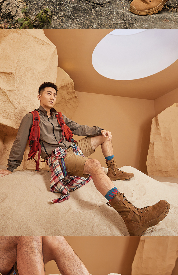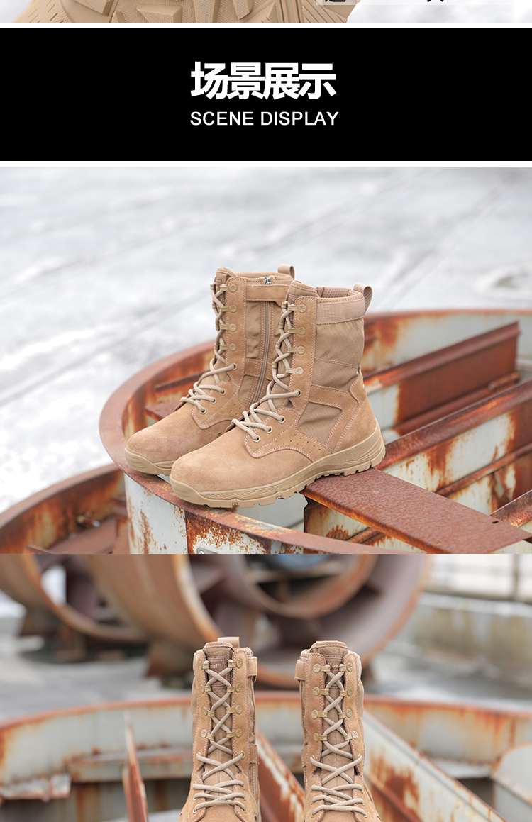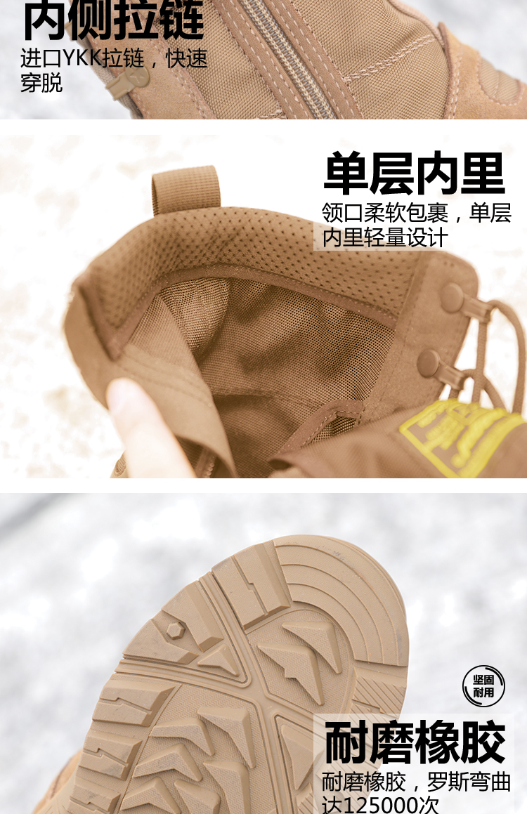 沙色悍戈户外高帮沙漠徒步靴战术靴战狼军迷靴马丁靴夏季轻量款33301