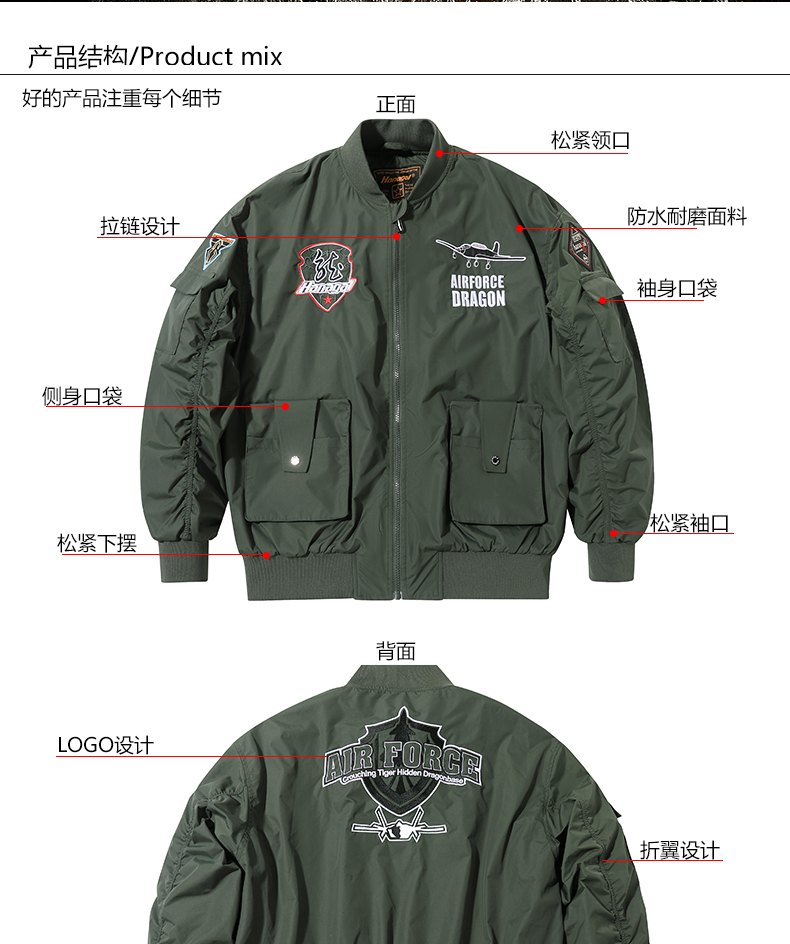 悍戈F11红龙春夏季新款外套男士夹克潮流休闲宽松飞行服机车服