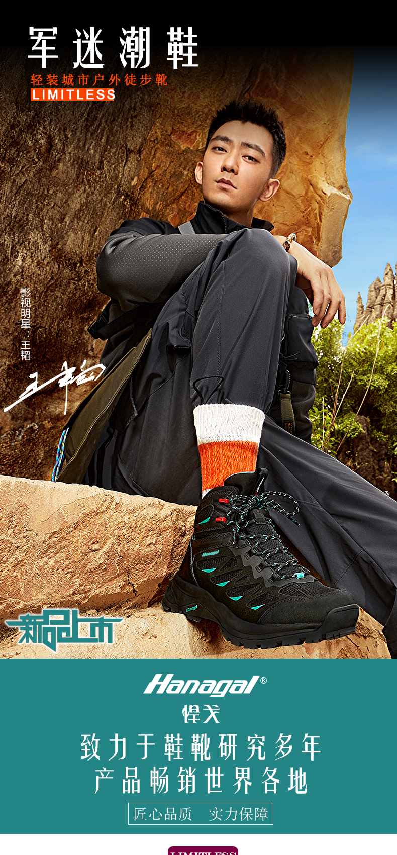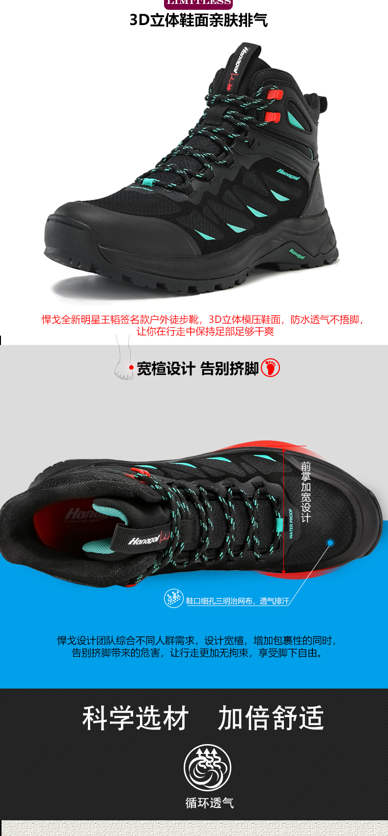 悍戈新款明星王韬同款户外徒步时尚休闲工装靴四季防水鞋