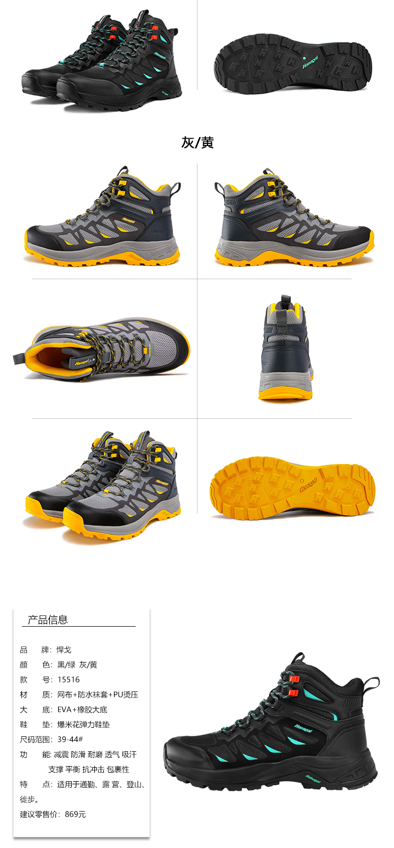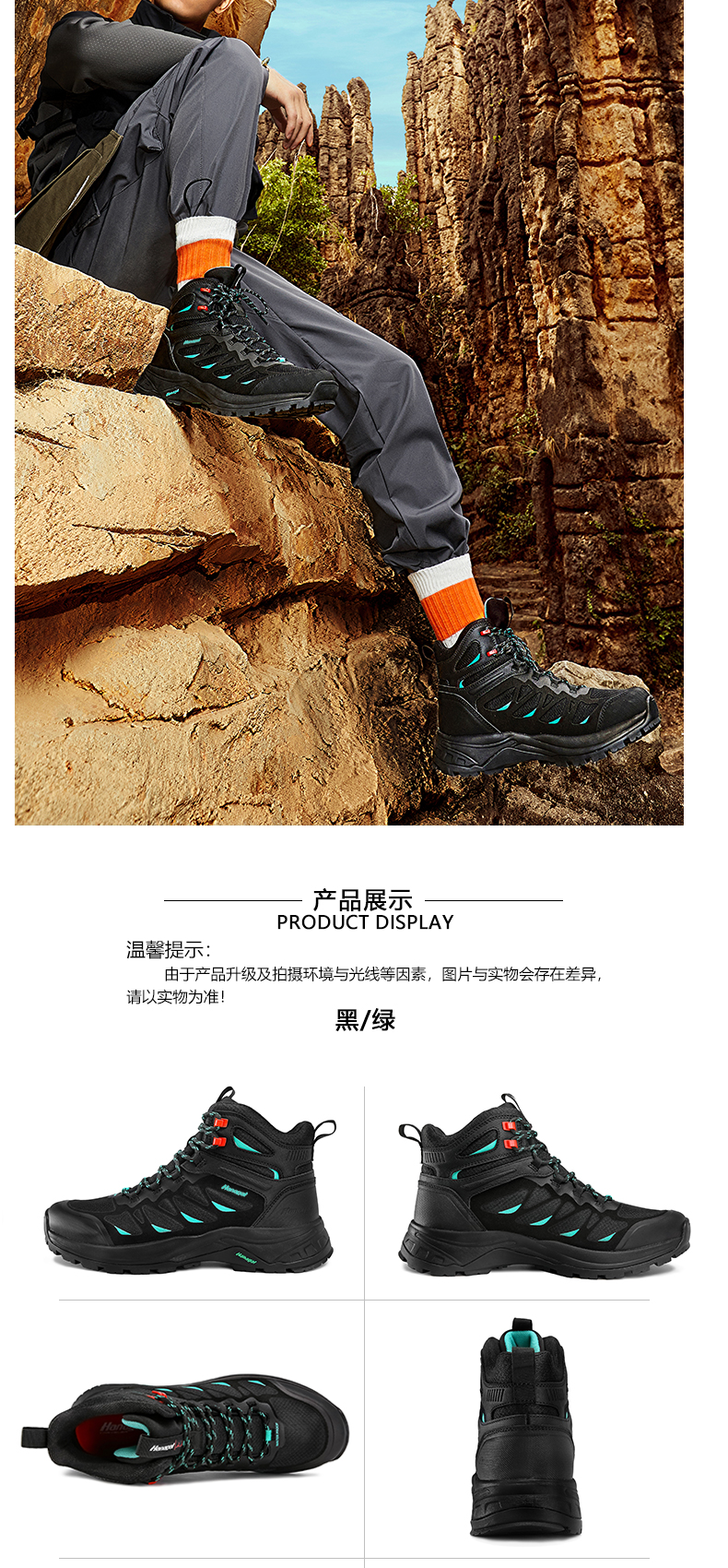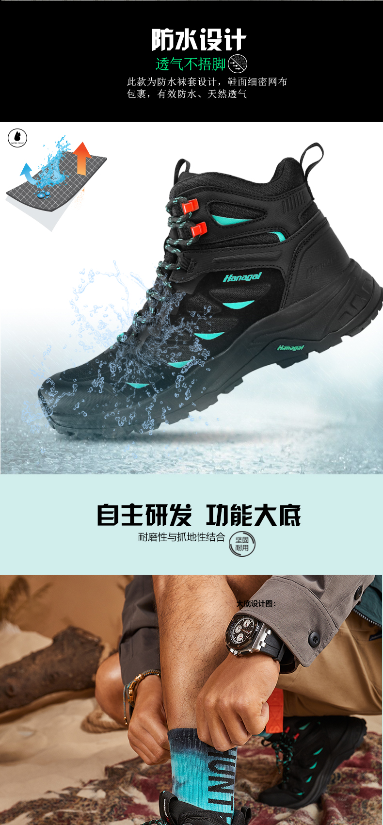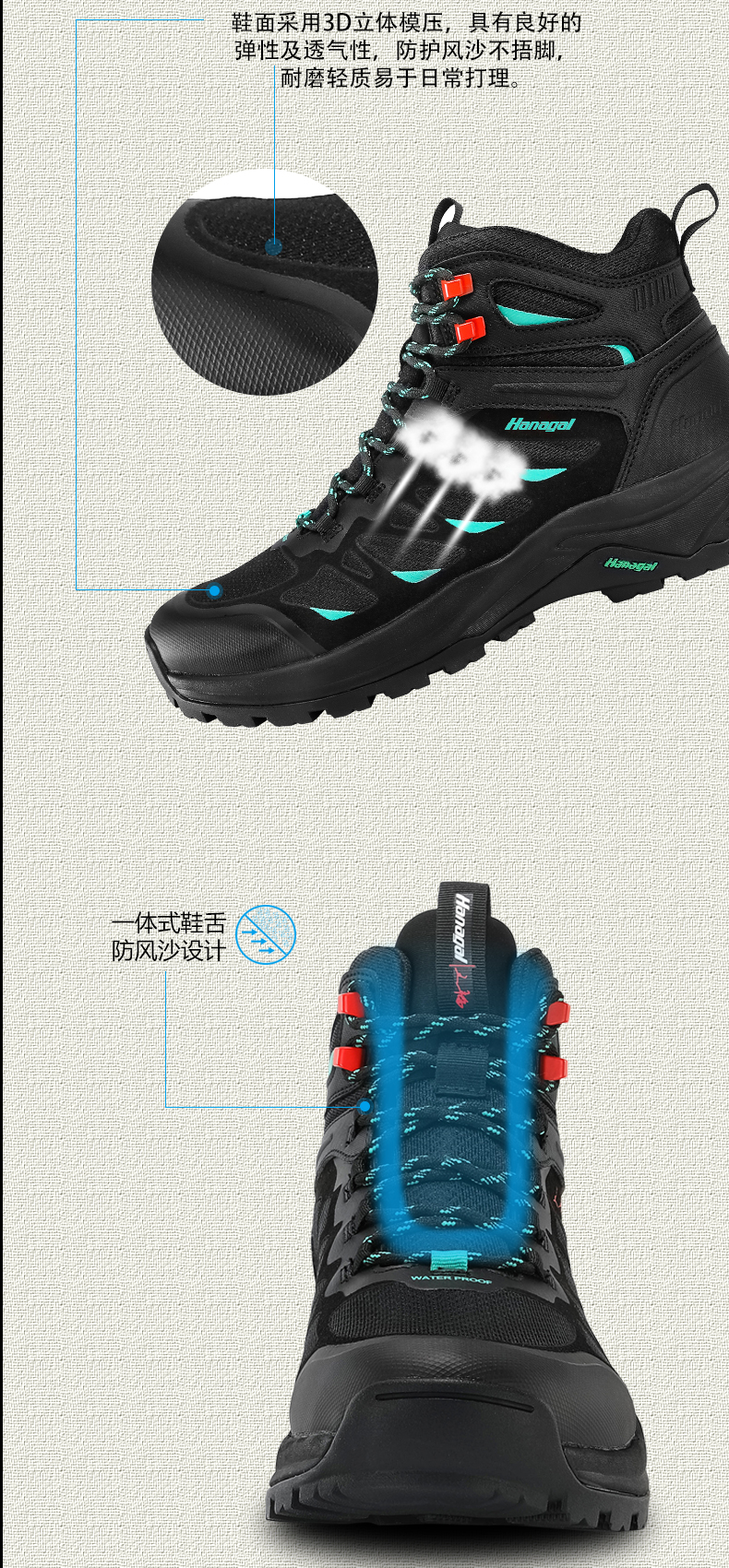 悍戈四季耐磨中帮登山鞋男士防水鞋女徒步鞋真牛皮防滑透气户外鞋51992
