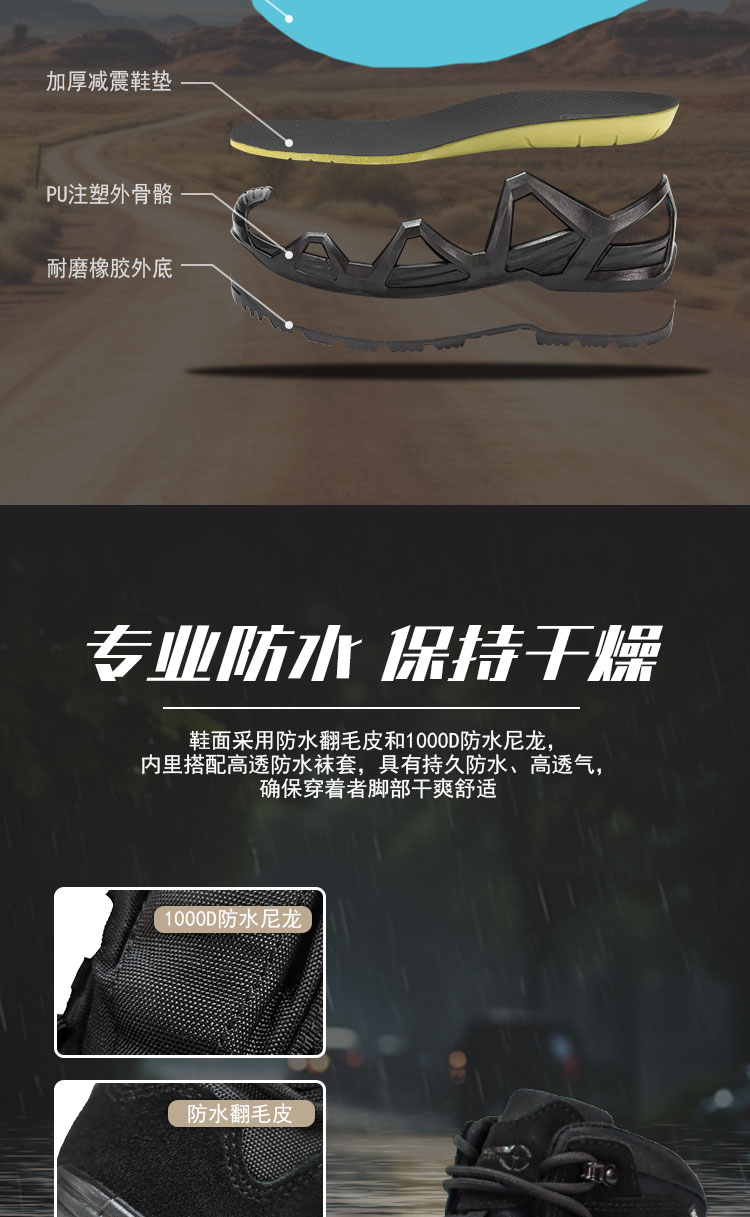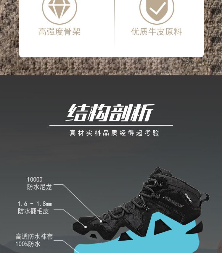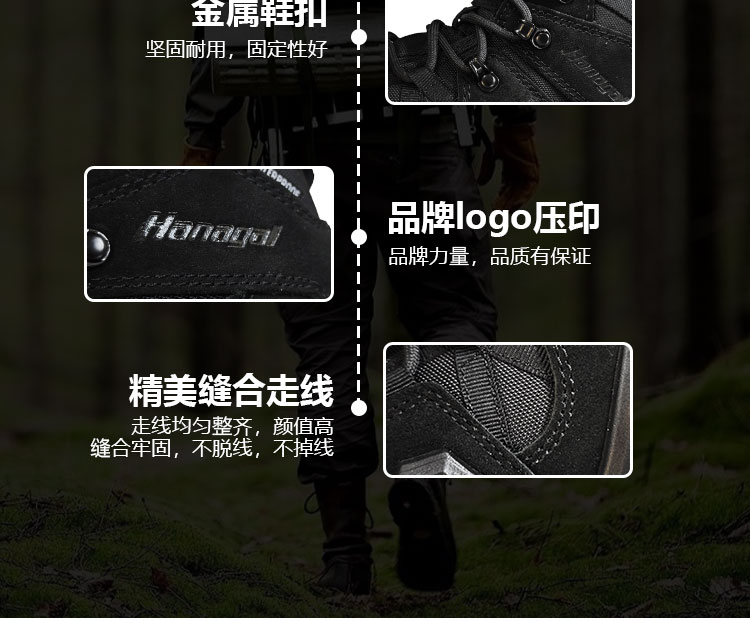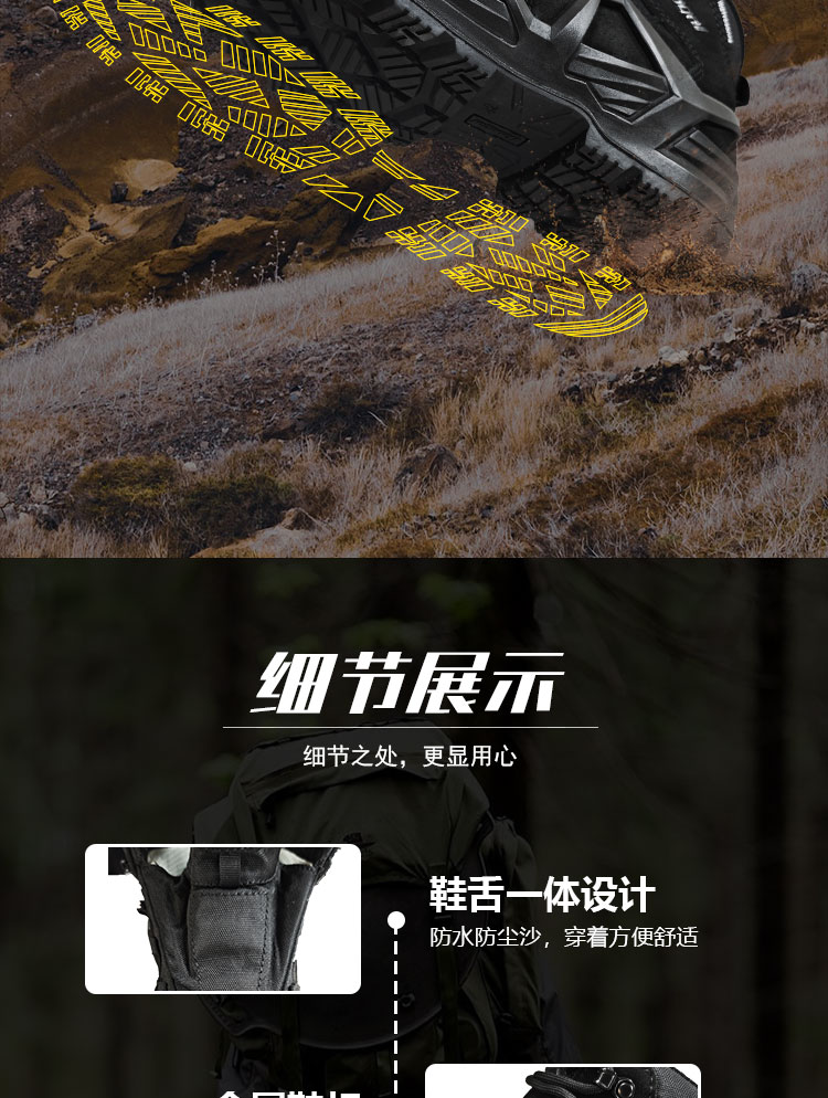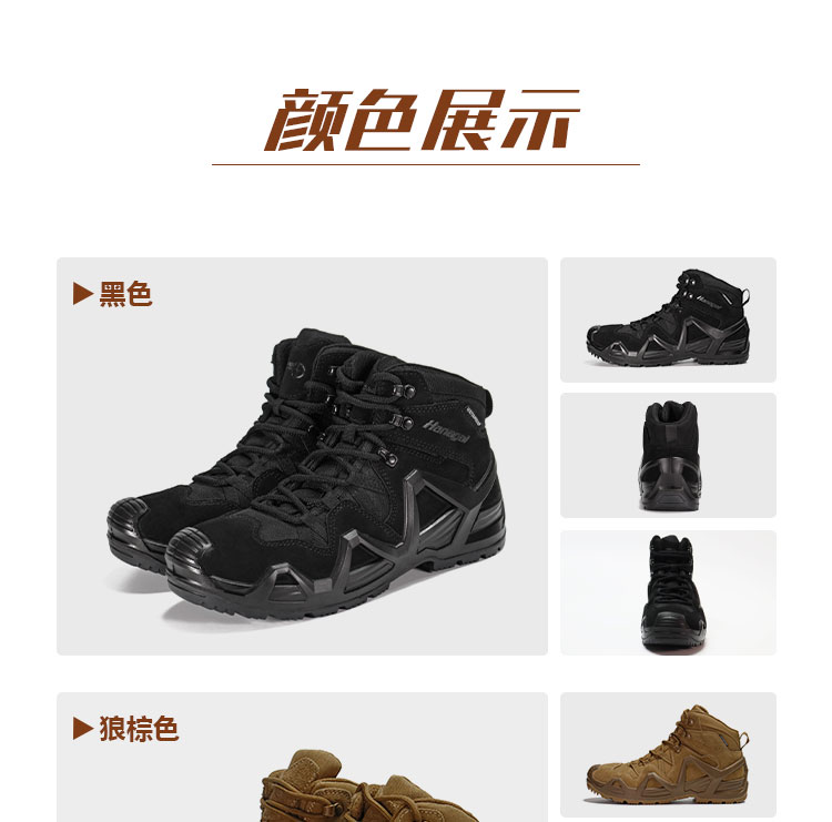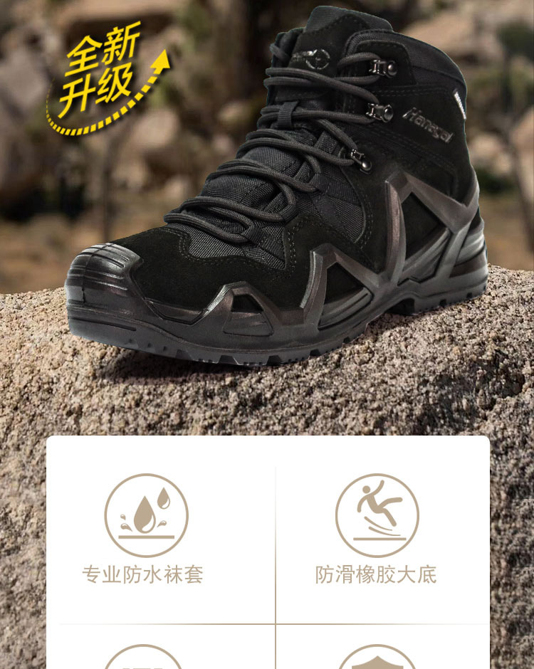 悍戈新款战术靴户外男女款式中帮防水登山徒步鞋沙漠鞋靴黑色