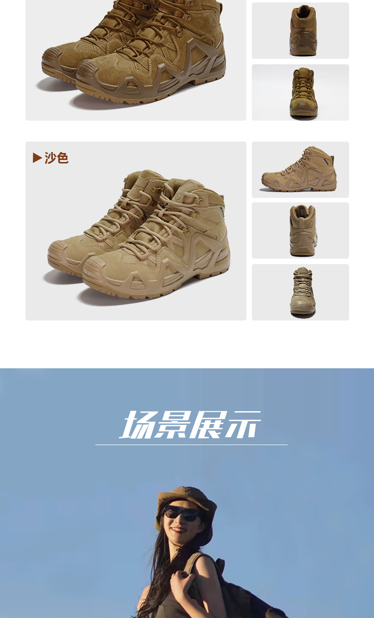 沙色悍戈户外高帮沙漠徒步靴战术靴战狼军迷靴马丁靴夏季轻量款33301